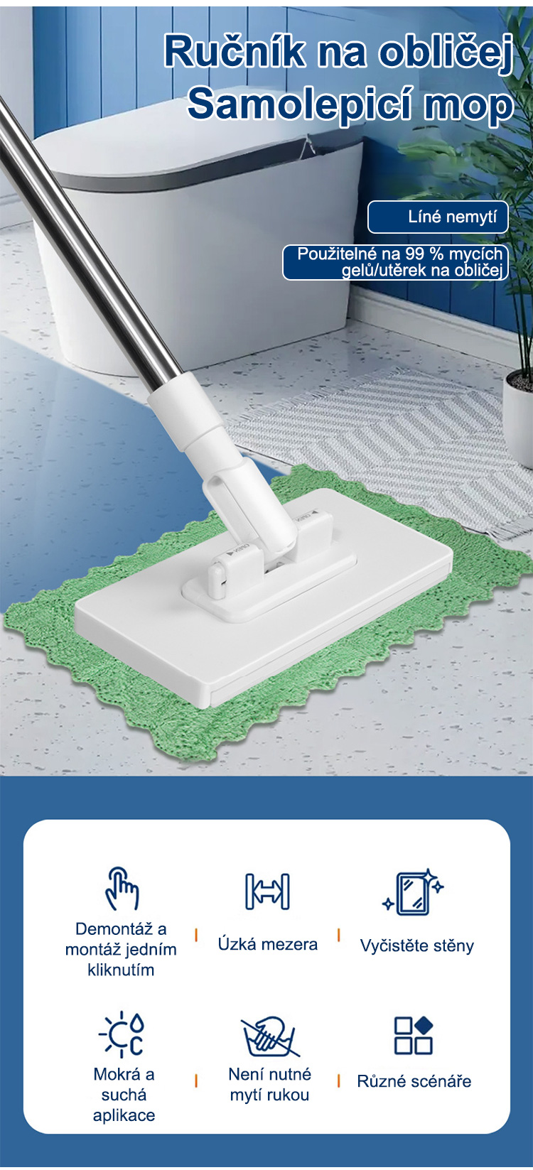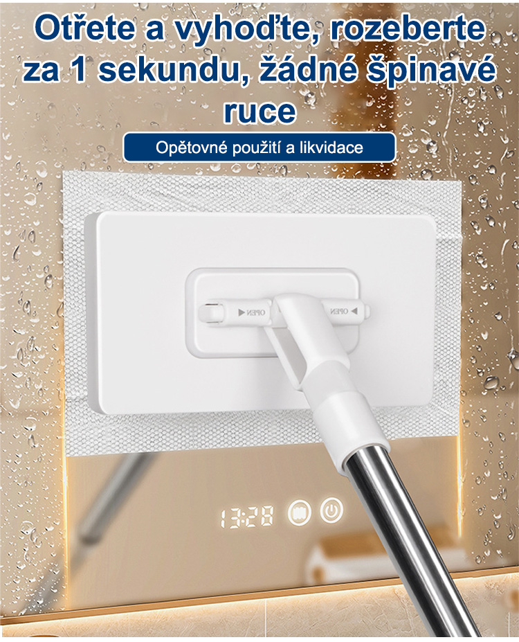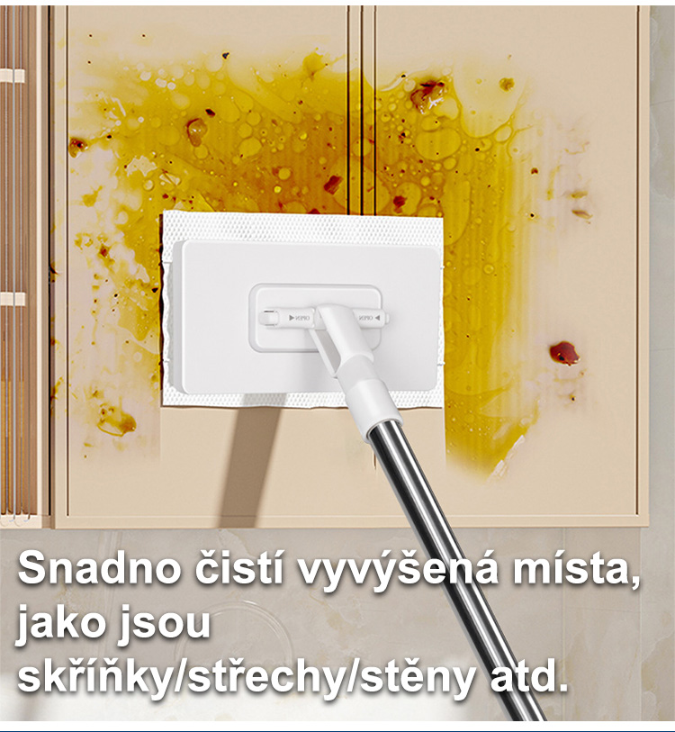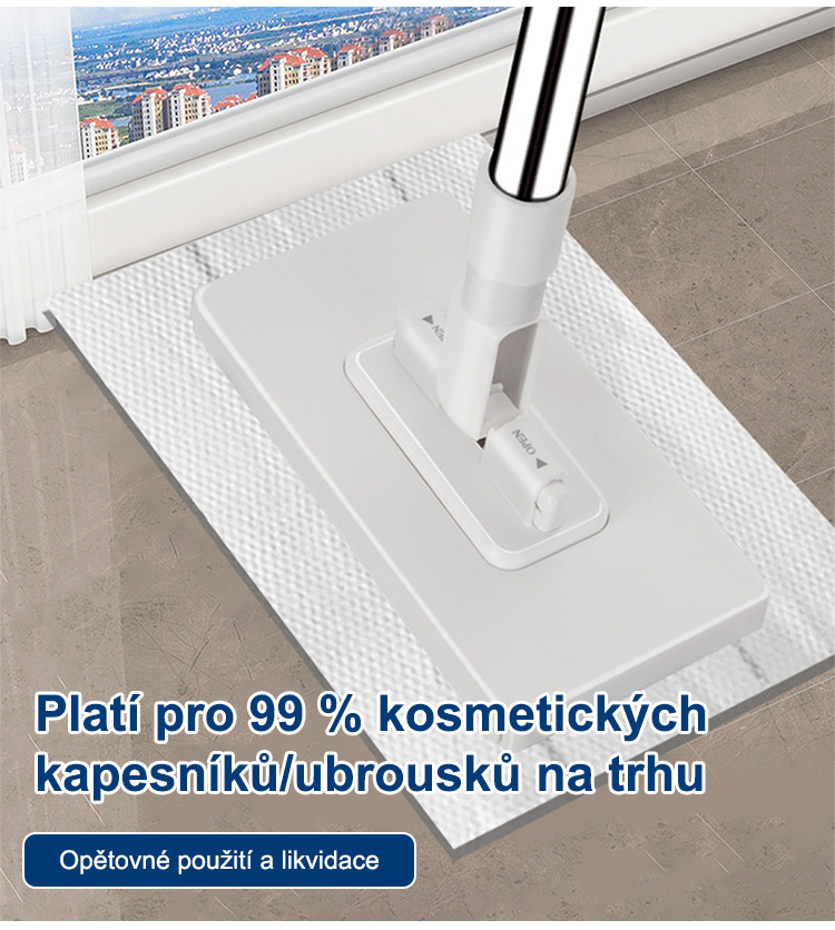 Úklid celého domu za 5 minut, sbohem špinavým rukám a bolestem zad! Po úklidu se nemusíte špinavého hadru dotýkat, oplachovat ho ani ždímat! Stačí ho rovnou vyhodit do koše! Zcela eliminuje zápach mopu a množení bakterií!